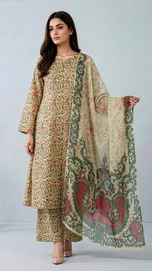 3 Piece - Khaddar Printed Suit- KSG-V11-02