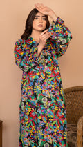 Printed Shirt Collar Neckline, Full Sleeve with Folded Cuff, Long length.