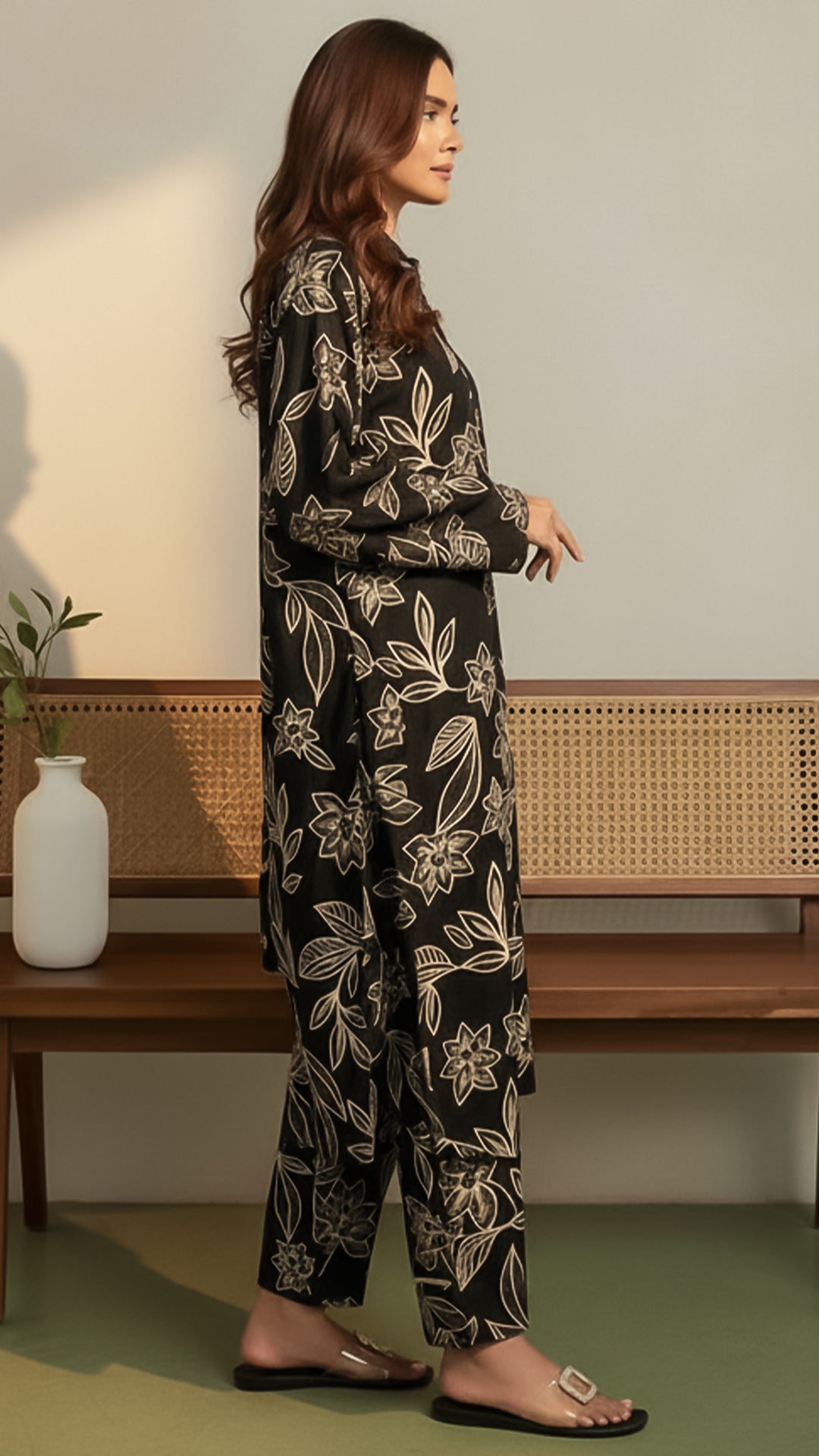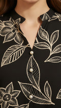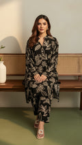 Drop Shoulder Shirt, Printed Front Panel, Printed Back Panel, flat ban with piping, round pearl buttons details, full sleeves, long length, design in a long length for a flattering relaxed fit.